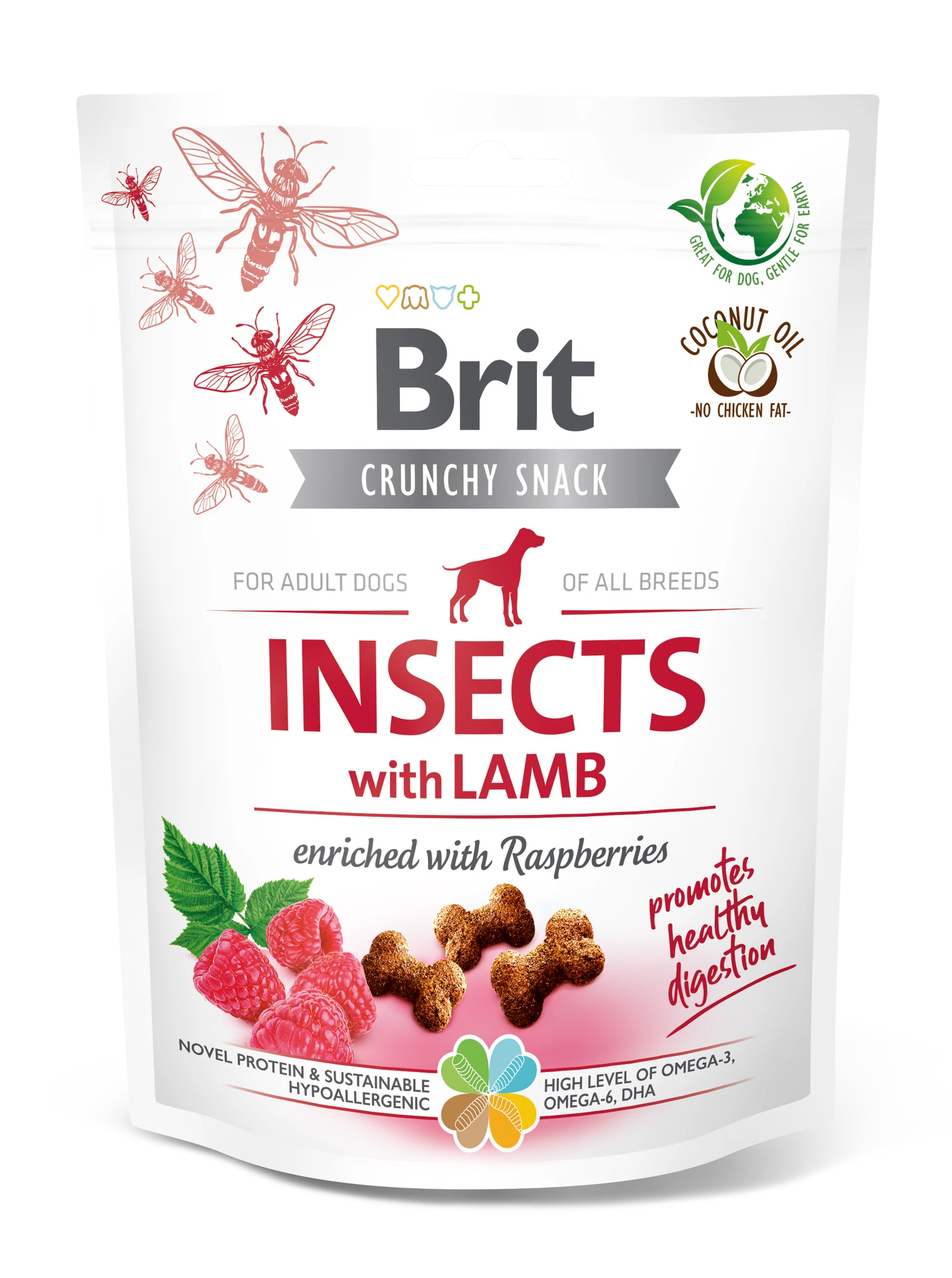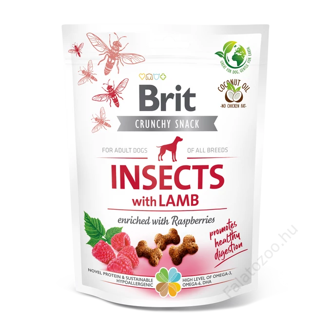 Ropogós csemege rovarokkal és bárányhússal, málnával dúsítva.