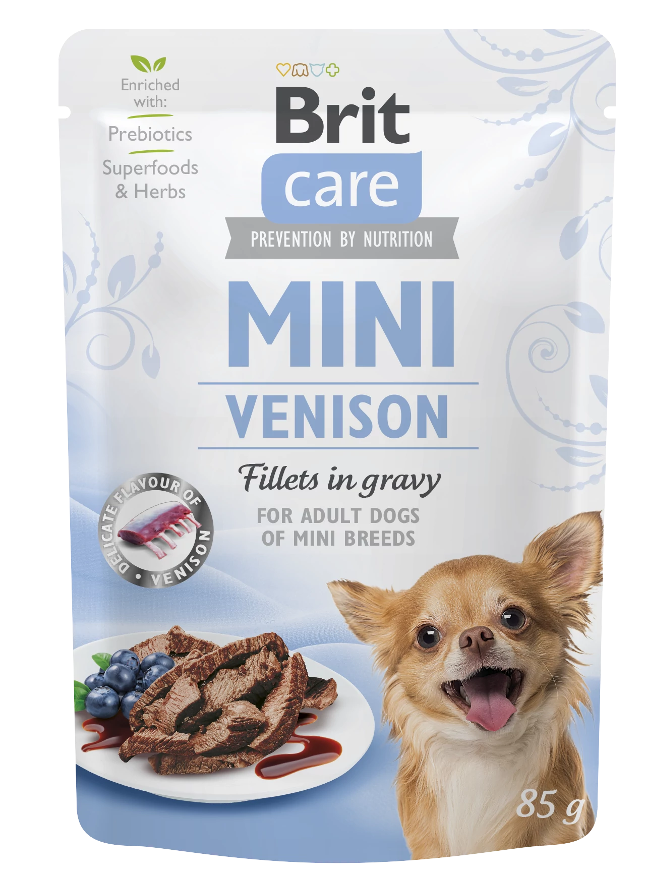 Brit Care Mini Venison fillets in gravy – Apróra vágott vadhúsdarabok szószban
