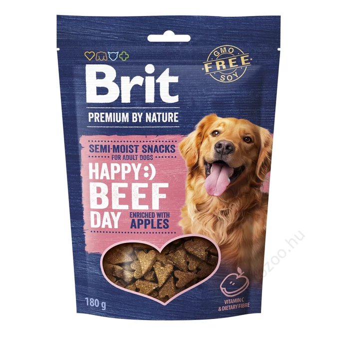 A BRIT PREMIUM BY NATURE SEMI-MOIST SNACKS egy félnedves jutalomfalat kutyáknak bárányhússal és homoktövissel.