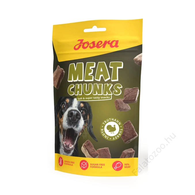 A Josera Meat Chunks Turkey egy finom gabonamentes jutalomfalat pulykahússal felnőtt kutyák számára.