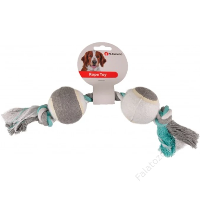Flamingo Jim Playing Rope - rágókötél 2 teniszlabdával Menta - 37cm x 6.3 cm