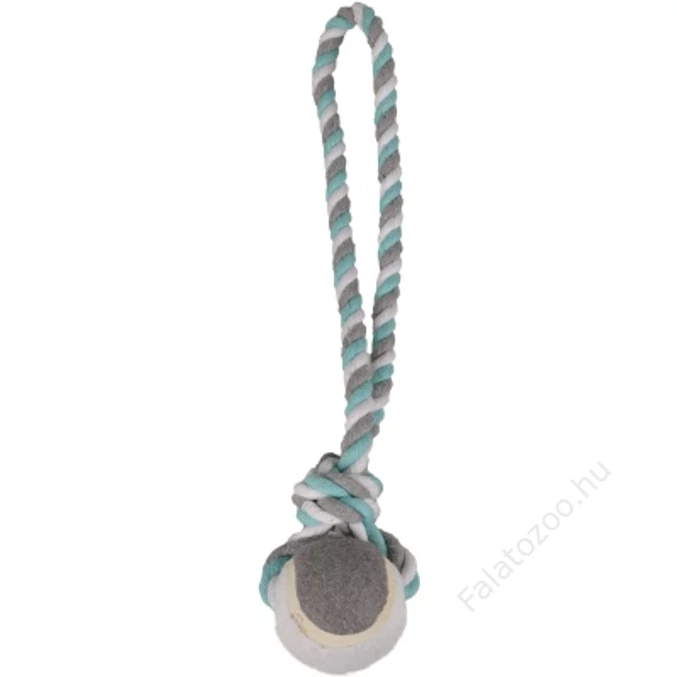 - Teniszlabdával felszerelt, menta/szürke/fehér színű, pamut rágókötél kutyáknak.