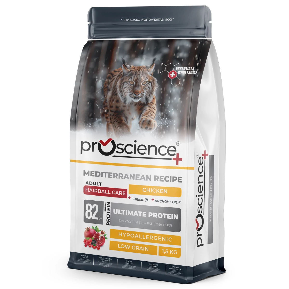 A Pro Science Adult Chicken Hairball Cat egy finom, mediterrán ihletésű receptúra, amelyet felnőtt macskák szőrlabda problémáinak enyhítésére fejlesztettek ki. Ideális eledel az egészséges emésztőrendszer, az erős immunrendszer és a fényes szőrzet fenntartásához.