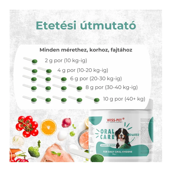 2 gramm/10kg testsúlykilógrammonként az ételre szórva vagy belekeverve